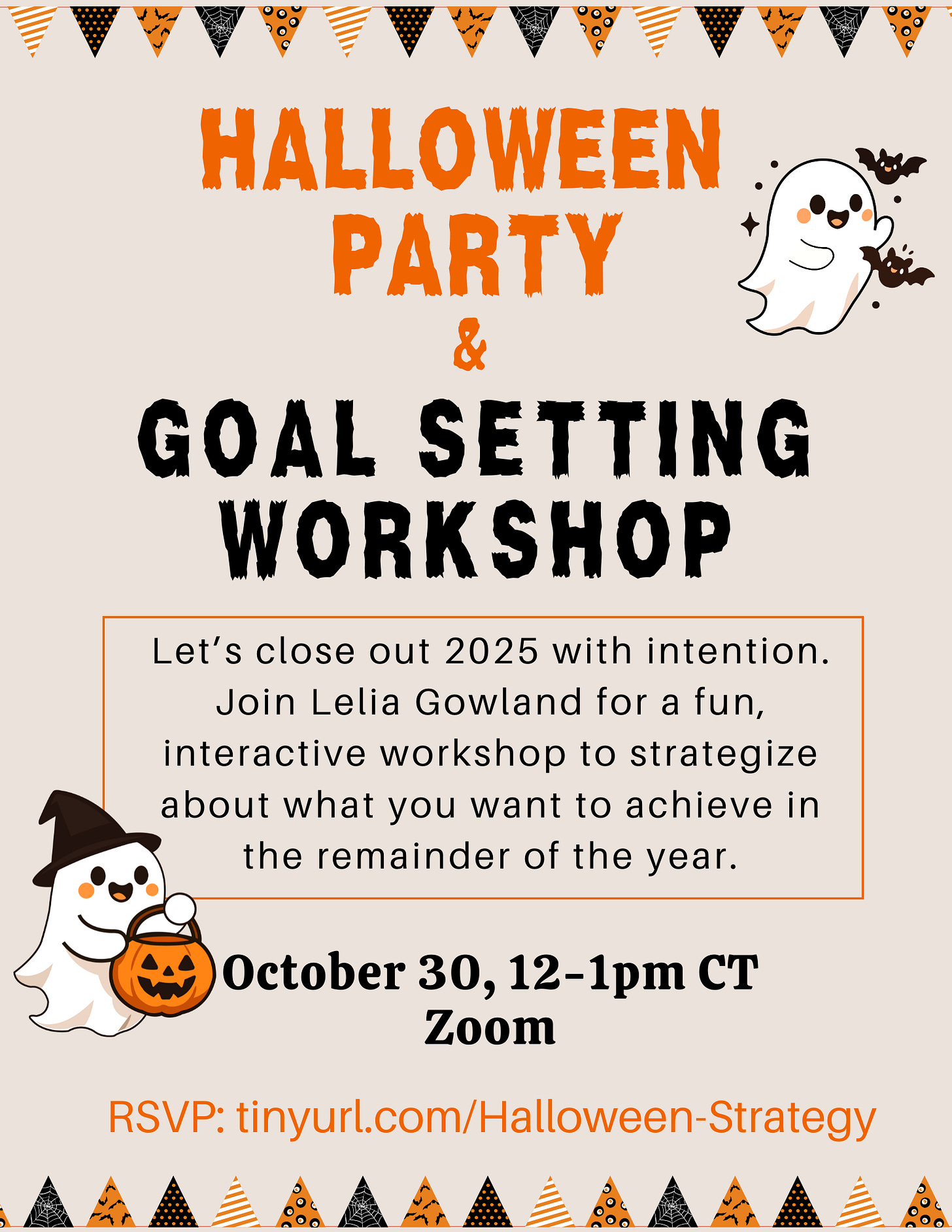 That’s why I’m hosting a free Halloween Party and Goal Setting Workshop Thursday, October 30, 12-1pm EST.